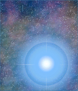 The processes that drive blue Haedus are not yet fully documented, but there is some evidence that its brightness may shift very slightly over a 24-day period. This hypothetical illustration shows the volatile star casting off a 'shell' of plasma; one among many possible causes for its apparent variability.